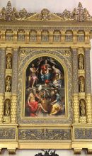 L'abside è decorata da una Madonna col Bambino, santi e il committente Matteo Malvezzi di Girolamo Siciolante da Sermoneta (1548), all'interno di una maestosa cornice del Formigine (1554). Qui si trova l'organo antico costruito da Giovanni Cipri nel 1556.