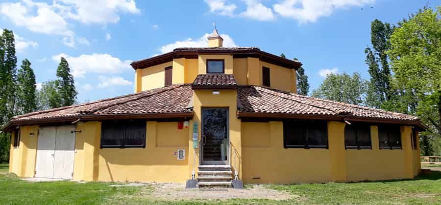 L'edificio venne realizzato nel XIX secolo per l'allevamento dei cavalli, attività tipica della zona fin dal XV secolo ad opera dei Pico, allora signori di Mirandola. Chiamato anche "Basilica delle Valli Mirandolesi", per la sua somiglianza con le chiese paleocristiane, il Barchessone Vecchio si distacca completamente dai rustici della cultura locale per la sua inconsueta e originale pianta poligonale. È caratterizzato infatti da una pianta di 16 lati e un diametro di circa 28 metri.