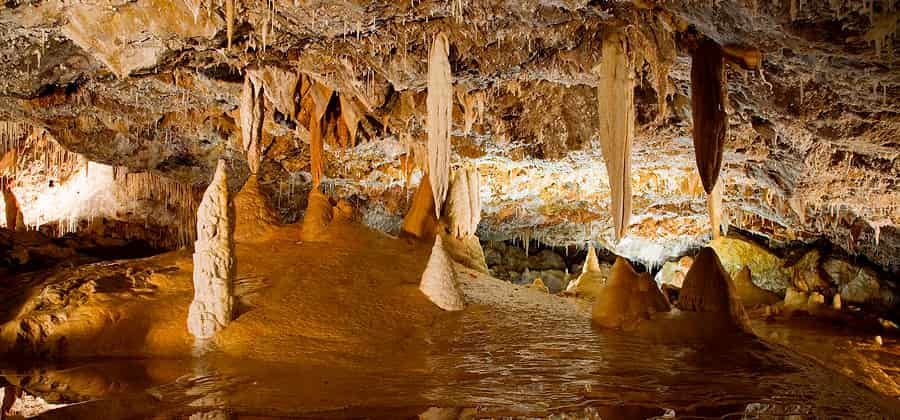 Nel primo tratto, lungo il torrente, si percorrono gallerie impostate lungo fratture con pareti verticali modellate dall'acqua in forme sinuose. Successivamente si incontrano i tipici concrezionamenti calcarei (alabastrini) delle grotte gessose; i piú estesi, di un acceso colore aranciato per la presenza di ossidi di ferro, formano una bella colata che decora una parete con stillicidio concrezionante attivo. Nel tratto successivo, si abbandona il livello attivo raggiungendo ambienti fossili dove si sono ampliate alcune sale per fenomeni di crollo. Nella Sala Quarina la volta é movimentata da mammelloni, curiose strutture coniche che indicano la base di uno strato di gesso. Il clima é qui piú caldo e asciutto rispetto alle gallerie dove scorre l'acqua. Preseguendo, lungo alcune superfici si notano le luminose infiorescenze di cristalli gessosi cresciuti sulla roccia selenitica.