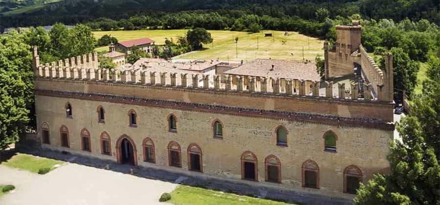 Bartolomeo Rossi iniziò la costruzione del castello nel 1482, e quando morì continuarono l’opera i figli Mino e Nestore. Il territorio di Pontecchio venne scelto sicuramente per la vicinanza strategica con Bologna e per la presenza del fiume Reno, poiché grazie ad esso ci si assicurava una via di comunicazione con la città, con la quale si scambiavano merci e prodotti agricoli. Inoltre le terre dei Rossi erano particolarmente fertili poiché erano state bonificate da monaci di ordini mendicanti che tra il 1100 e il 1400 si resero autori di risanamenti di aree rurali circostanti le città. La loro presenza sul territorio è testimoniata dalla costruzione della torre colombaia che rappresentava una caratteristica degli insediamenti monastici e che è tuttora presente nel borgo del palazzo.