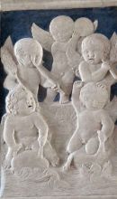 Nella Cappella di San Michele Arcangelo si trova un crocefisso su tavola di Giotto (1312), resto della preesistente chiesa trecentesca. Nella Cappella dei Giochi infantili vi sono dei deliziosi bassorilievi con angeli e putti mentre nella cappella della Madonna dell'Acqua si trovano dei pregiati pilastri che rappresentano profeti e sibille. Sul lato sinistro del tempio è stata realizzata l'arca degli Antenati e dei Discendenti con i bassorilievi di Agostino di Duccio con Minerva tra una schiera di eroi e il Trionfo di Scipione l'Africano. Un dipinto del Vasari rappresentante San Francesco che riceve le stimmate è collocato sopra l'altare del presbiterio.