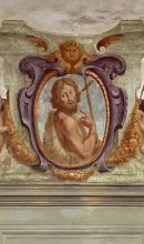 Al primo piano, accessibile da un ampio scalone che parte dal piccolo piazzale vicino l'ingresso principale della Certosa, si trovano invece due saloni, dove è collocata la Pinacoteca. La prima sala della Pinacoteca è un vasto salone coperto a capriate, che sulla parete sinistra accoglie i cinque affreschi con Scene della Passione staccati dalle lunette del chiostro grande, che furono realizzati dal Pontormo (1523-1525) durante il suo soggiorno alla Certosa per sfuggire all'epidemia di peste che imperversava a Firenze.