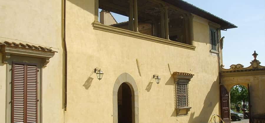 Sul lato verso il giardino all'italiana spicca una torre inglobata nell'edificio principale, forse più antica, di epoca medievale, forse duecentesca, sulla quale si apre oggi un'altana sostenuta da colonnine con capitelli tuscanici e volute in stile ionico. Un'altana caratterizza a un livello inferiore anche il corpo di fabbrica ovest sul cortile, dove spicca il soffitto decorato a mirabolanti grottesche con scene mitologiche e agresti, opera di Piero Salvestrini (1597), attivo alla fine del Seicento nella scuola di Bernardino Poccetti, che nella zona aveva già decorato la Villa Franceschi e la Villa il Casale.