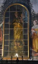 Nella prima cappella a sinistra è collocato il Compianto sul Cristo morto, gruppo scultoreo in legno policromo costituito da nove statue ad altezza naturale raffiguranti una deposizione del corpo di Cristo, di autore ignoto, risalente sempre al XVI secolo. Sul secondo altare, dedicato alla Madonna del Rosario, si trova una statua lignea dorata della Vergine di epoca settecentesca, voluta da una nobildonna medese appartenente alla famiglia Fossati. Sulla destra si trova santa Caterina d'Alessandria, che presenta alla Vergine una monaca, che potrebbe essere la badessa Maria Cleofe Carcano, devota a Caterina d'Alessandria e fautrice della ricostruzione della chiesa, nel 1520, oppure Susanna del Bene, badessa dal 1535 e al cui nome alluderebbe dunque l'episodio biblico raffigurato sulla destra, la nota scena di Susanna e i vecchioni. Questi affreschi sono attribuiti a Giovanni Lomazzo, che ereditò la bottega del Luini alla sua morte. Tra le pitture dell'ex chiesa interna, visibili al piano superiore, si segnalano i tondi raffiguranti Cristo benedicente, San Pietro e San Giovanni evangelista.