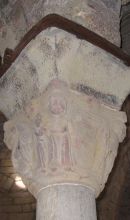 Alcune tracce di affreschi piuttosto degradati ingentiliscono l'absidiola del matroneo. L'affresco, di anonimo, raffigura un'Annunciazione ed è racchiuso in una mandorla che copre la parte interna della semicupola dell'absidiola. Dio, al centro e in posizione dominante, campeggia la scena mentre si svolge il dialogo fra l'Angelo e la Vergine in una narrazione permeata da rustica vivacità e da attenzione per il particolare. Si tratta di un'opera, probabilmente trecentesca, dai colori vivi e dalla descrizione vivace e realistica, che testimonia la devozione popolare verso la Vergine: tema piuttosto comune e diffuso nell'iconografia religiosa dell'epoca nel territorio.