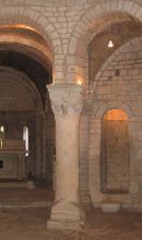 L'interno del primo corpo è caratterizzato da otto colonne che seguono un percorso circolare creando due spazi concentrici con degli effetti chiaroscurali di particolare fascino; la parete circostante è scandita da nicchie che ne muovono lo sviluppo in un magico gioco d'ombre esaltato da semicolonne su cui poggiano eleganti capitelli; vi è anche traccia di un affresco ancora leggibile. Il matroneo, il corpo superiore, presenta anch'esso otto colonne, sovrastanti quelle inferiori, che creano un corridoio circolare, il deambulatorio, che si affaccia sul vuoto centrale del corpo inferiore.