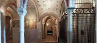 La cripta sotterranea della chiesa inferiore, alla quale si accede dalla sinistra della navata principale, è ricoperta con lastre marmoree di epoca augustea che testimoniano l'antica pavimentazione del Foro Romano.