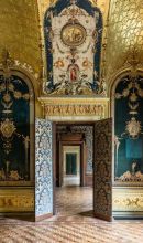 Molto ricchi sono gli interni, di cui si segnalano: la "Sala di Flora", detta anche salottino azzurro, tappezzato in velluto di seta, con specchiere, decorazioni e sculture di Lodovico Pogliaghi, e affrescato da Mosè Bianchi; la "Sala di Prometeo", cosiddetta per il grande camino neorinascimentale sormontato dalla scultura di Prometeo sempre del Pogliaghi; il Salone da ballo affrescato alle pareti con "Il Ballo" da Giuseppe Bertini e, nel soffitto, da Luigi Cavenaghi. Il palazzo ha ospitato per tutto il Novecento la sede della Famiglia Meneghina, celebre circolo privato milanese.
