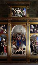 Notevole è la pinacoteca, che raccoglie opere provenienti dal territorio. La sezione medievale che documenta la vita della città nel periodo di massimo splendore comprende, tra l'altro, opere di Ludovico di Magno da Siena (not. 1395), Pietro di Domenico da Montepulciano (att. XV secolo) e Vincenzo Pagani (1490-1568). Spicca la sezione rinascimentale che raggruppa significative opere di Lorenzo Lotto, create durante i suoi soggiorni in città: la famosa Annunciazione, il Polittico di Recanati, formato da sei scomparti, la Trasfigurazione e un San Giacomo Maggiore Una sezione è dedicata al Seicento e Settecento e uno spazio per le esposizioni temporanee artistico-culturali è situato al piano terra.