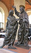 Le statue si trovano su pedane che corrispondono alle posizioni nei rispettivi tabernacoli. Il progetto originario prevedeva la costruzione di pannelli attorno alle statue che simulassero le nicchie, ma poi si è preferito lasciarle senza cornice per permettere di apprezzarle a tutto tondo. Solo l'Incredulità di San Tommaso, essendo l'unica cava e senza retro, è stata circondata dai pannelli.