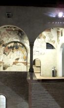 Gli ambienti monumentali affrescati si trovano al secondo piano. In cima alla scala si trova un ampio vano, detto Sala di Sisto IV, dal nome del pontefice che nel 1475 fece rifare il soffitto ligneo su cui compare il suo stemma. È decorata da affreschi con motivi ornamentali e figurati della fine del Quattrocento/inizio del Cinquecento, ampiamente restaurati nel 1930.