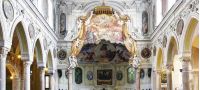 La navata centrale, lunga circa 100 m ed alta circa 48 m, è coperta dal ricco soffitto a cassettoni secentesco intagliato e dorato che ospita cinque tele di Girolamo Imparato. Sulle pareti della navata ci sono dipinti di Luca Giordano raffiguranti Apostoli e Dottori della Chiesa. Sui sedici pilastri, invece, sono sistemate le edicole con i busti dei primi sedici vescovi della città, scolpiti tra il Seicento e il Settecento.