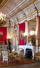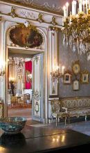 Quella ad oriente immette nel grande salone da ballo e di qui nella sala dell'orchestra. La sala ad occidente dà accesso alla sala da pranzo e alla quadreria, adibita anche a sala biliardo. Le decorazioni a stucco, i dipinti e gli arredi di queste sale sono quelli originali.