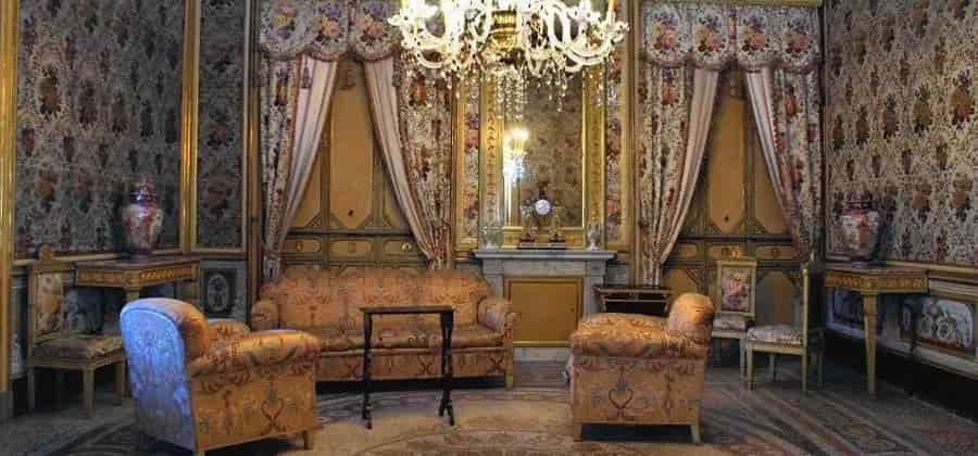 L'interno è arredato con magnificenza. Perfetto esempio delle residenze dell'aristocrazia palermitana, il palazzo custodisce arredi che vanno dal Seicento all'Ottocento. Numerosi i lampadari di Murano, i pannelli laccati di Cina, gli orologi, le porcellane, e gli arazzi. Come in molte residenze coeve, vi è un fumoir arredato alla cinese con il pavimento in cuoio, realizzato presumibilmente nella seconda metà del XIX secolo. Gli ambienti di rappresentanza girano intorno ad una terrazza, arredata da un ninfeo rocaille e decorata da un tromp l'oeil di un giardino.
