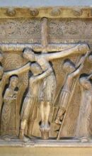 La Deposizione dalla croce, opera di Benedetto Antelami in origine, faceva parte dell'antico ambone romanico, demolito nel XVI secolo. Questo bassorilievo raffigura, al centro, Gesù che viene calato dalla croce e, ai lati, personaggi simbolici, come le tre Marie (simbolo della Resurrezione) e la personificazione dell'Ecclesia e della Sinagoga.