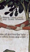 Il ciclo, completato poco dopo il 1420, rappresenta una serie di eroi ed eroine (presumibilmente i ritratti dei marchesi e marchese di Saluzzo), qui illustrati secondo la tradizione iconografica classica, ebraica e cristiana ed effigiati con preziosi abiti del tempo, e la cosiddetta Fontana di giovinezza, tema questo ripreso dall'antica tradizione dei romanzi francesi medievali. I suddetti personaggi sono ispirati ad un poema scritto da Tommaso III di Saluzzo, le Chevalier Errant e sono in ordine: Ettore, Alessandro Magno, Giulio Cesare, Giosuè, Davide, Giuda Maccabeo, Re Artù, Carlo Magno, Goffredo di Buglione, Delfile, Sinope, Ippolita, Semiramide, Etiope, Lampeto, Tamiri, Teuca, Pentesilea (tutti ancora ben visibili, tranne l'ultima eroina, rimasta mutilata dal crollo dell'intonaco).