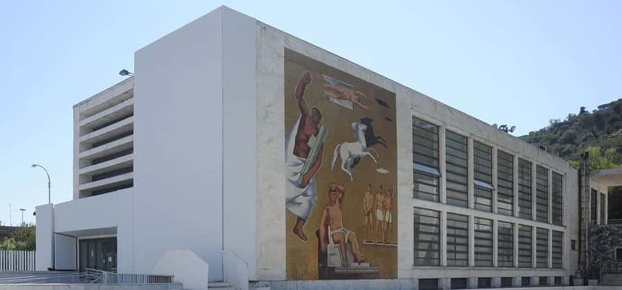 Progettata dall'architetto Luigi Moretti, l'Accademia della Scherma nasce architettonicamente come esperimento tipologico avanzato dell'Opera Nazionale Balilla, di cui il Moretti fu direttore tecnico. La Casa delle Armi, posta ai margini meridionali del Foro Italico, di fronte alla foresteria (poi Ostello, oggi parzialmente occupata da uffici e in attesa di destinazione) di Enrico Del Debbio, ha un impianto a elle. Il lato corto rivolto verso il Tevere è bipartito: cieco per metà e segnato da una griglia finestrata gigante orizzontale per l'altra metà. La seconda parte ospitava la vera e propria sala della scherma, lunga 45 metri e larga 25, che consentiva la presenza simultanea sulle pedane di 160 atleti. Le facciate sono rivestite uniformemente in marmo bianco di Carrara.