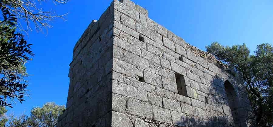Il palazzo, del quale si conservano la base e tre muri esterni, era un edificio a pianta quadrata di 9,20 metri per lato, con basamento a scarpa, sviluppato su tre piani per un'altezza di almeno dieci metri e munito di terrazza. L'ingresso al piano nobile, posto a circa 3 metri dal piano di campagna, era assicurato da una scalinata esterna. La tecnica costruttiva utilizzata richiama gli edifici religiosi in stile romanico sardo della Gallura e della Corsica.