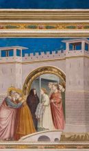 Le figure hanno un volume ancora più reale che ad Assisi, avvolte da ampi mantelli attraverso cui si capisce la modellazione dei corpi sottostanti. Anche le architetture di sfondo, una delle caratteristiche più evidenti di Giotto, non presentano più incertezze e concessioni allo sfondo irreale. Sono chiare e reali, proporzionate con le figure che interagiscono con esse. Per esempio nella Presentazione della Vergine al tempio vi sono più forme combinate che creano un notevole gioco di vuoti e pieni, con zone aperte in piena luce e recessi coperti in una fitta ombra. Anche la Cacciata dei mercanti dal tempio presenta un'articolata costruzione tridimensionale (eloquente è il gesto minaccioso del Cristo infuriato che alza il pugno), oppure nella scena delle Nozze di Cana.