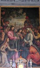 La cattedrale di Santa Maria Assunta è il luogo di culto cattolico principale di Volterra. L'interno, pur conservando nella struttura e nell'impianto la forma basilicale a croce latina a tre navate, offre un aspetto tardo-rinascimentale. Lo spazio è diviso da ventidue colonne rivestite di stucco simulante granito rosa, intervento eseguito nell'ambito del restauro del 1842-1843, mentre i capitelli in stucco bianco realizzati nel Cinquecento e messi a oro sono di Leonardo Ricciarelli. Anche le pareti dipinte a bande bianche e grigie, il presbiterio e il pavimento sono frutto del restauro ottocentesco.
