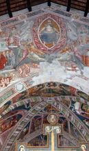 Nell’arco trionfale è rappresentato il Giudizio Universale, realizzato forse con l’aiuto di Jacopo Salimbeni da San Severino. Nell’abside sono illustrate Storie della vita di S. Agostino. Questi dipinti, databili verso il 1420, rappresentano una delle principali testimonianze della pittura tardogotica eugubina.