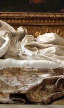 Sopra l'altare della cappella Paluzzi Albertoni (che si apre nella parete di fondo del transetto sinistro), vi è la Beata Ludovica Albertoni, scolpita da Gian Lorenzo Bernini per il cardinale Paluzzi (nipote di papa Clemente X) tra il 1671 e il 1675. La statua, vero esempio di trasporto mistico-carnale e di estasi barocca, è collocata su uno spettacolare drappo in diaspro sopra la mensa dell'altare della cappella; la parete di fondo, sempre secondo i suggerimenti di Gian Lorenzo Bernini, è stata scenograficamente arretrata per permettere alla luce di penetrare nell'ambiente da due finestre laterali nascoste, creando un effetto quasi soprannaturale, proprio come nell'Estasi di Santa Teresa della chiesa di Santa Maria della Vittoria. La pala della cappella, inquadrata da teste di cherubini in stucco che ribadiscono il sentore di apparizione mistica che pervade tutto il sacello, è del Baciccio e raffigura la Madonna col Bambino e Sant'Anna (1675 circa).