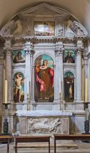 All'interno della chiesa si possono trovare opere di grande rilievo. Il Trittico della Misericordia del pittore muranese Bartolomeo Vivarini è del 1473 è collocato nella prima cappella di destra. Ed è considerato uno dei migliori presenti nella struttura. Il Trittico prevede la Vergine della Misericordia, L'incontro di Gioacchino ed Anna, la Nascita della Vergine, tecnica della tempera all'uovo. I dipinti Santa Barbara e quattro santi, Vincenzo Ferreri, Sebastiano e Antonio Abate sono opere di Jacopo Negretti detto Palma il Vecchio 1523. Di Jacopo Palma il Giovane Madonna in pietà e San Francesco D'Assisi del 1604. Vi si conservano dipinti della scuola di Giovanni Bellini