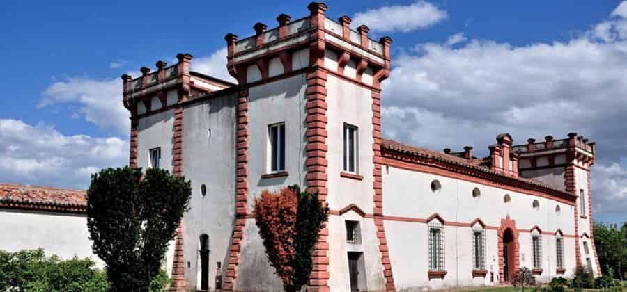 Si tratta di una villa rettangolare a due piani delimitata ai vertici da quattro torri merlate. Costruita in mattoni intonacati di bianco. È collegata tramite un portico settecentesco ad una cappella privata. Nella parte posteriore c'è un brolo (un giardino rinascimentale) e una torre colombaia (presente nel ferrarese, in diverse ville signorili).