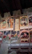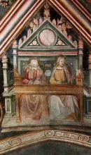 I due pittori principali operano nei primi anni del XIV secolo. Sovrapposti al "velario" rappresentato sulle pareti della cappella e sotto la Crocefissione, troviamo tre affreschi "posteriori", probabilmente commissionati da altri discendenti della famiglia Porro nel secolo successivo.