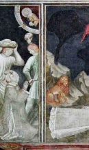 Gli altri affreschi sono opera di un gruppo di pittori chiamati per convenzione Maestri di Lentate, rappresentanti della scuola tardo-gotica nota come Gotico Internazionale. Il ciclo di affreschi dedicato al Santo si compone di 43 riquadri disposti su due registri. I riquadri si leggono da sinistra a destra (con le spalle all'altare) partendo dal registro superiore. Gli affreschi narrano vicende legate alla vita del Santo prima e dopo la sua morte. Le fonti sono principalmente gli Atti degli Apostoli e la Legenda Aurea di Jacopo da Varazze.