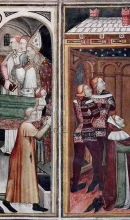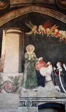 Altro affresco della chiesa, posto sulla destra dell'abside, raffigura la "Donazione" della cappella a S. Stefano; il conte viene ritratto inginocchiato, nell'atto di offrire al Santo la chiesa (che tiene tra le mani) assieme a tutta la famiglia: Caterina Figini, i figli Galeazzo, Antonio, Giovanni e le tre figlie delle quali non ci sono giunti i nomi.