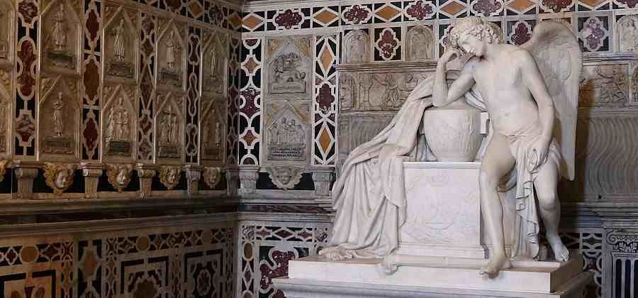 Consta di una scala di accesso e di tre cappelle intercomunicanti tutte rivestite di marmo. Contiene complessivamente 179 nicchiette disposte nelle pareti delle tre cappelle Sopra ogni nicchietta vi è una formella in marmo a bassorilievo del santo con il relativo nome ed i simboli del martirio. Le decorazioni scultoree furono cominciate da maestranze siciliane e portate a termine da Antonio Zelpi e da Monsterrat Carena. Le volte nei tre ambienti sono decorate a rosoni con punte di diamante in rilievo.