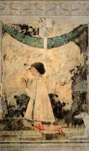 Nella Cappella di San Michele Arcangelo si trova un crocefisso su tavola di Giotto (1312), resto della preesistente chiesa trecentesca. Nella Cappella dei Giochi infantili vi sono dei deliziosi bassorilievi con angeli e putti mentre nella cappella della Madonna dell'Acqua si trovano dei pregiati pilastri che rappresentano profeti e sibille. Sul lato sinistro del tempio è stata realizzata l'arca degli Antenati e dei Discendenti con i bassorilievi di Agostino di Duccio con Minerva tra una schiera di eroi e il Trionfo di Scipione l'Africano. Un dipinto del Vasari rappresentante San Francesco che riceve le stimmate è collocato sopra l'altare del presbiterio.