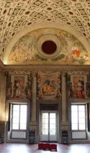 Il salone, detto di Leone X, è splendidamente decorato con affreschi allegorici, celebrativi della famiglia Medici, eseguiti da Andrea del Sarto, Pontormo, Franciabigio, Alessandro Allori.