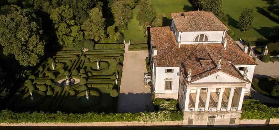 La planimetria della villa mostra una straordinaria coerenza geometrica, basata sul quadrato, che determina la forma sia della villa che della sala centrale. La struttura dei volumi è particolarmente nitida, articolata nel blocco principale, la copertura emergente dalla sala centrale e la loggia sul fiume. Quest’ultima è una vera e propria sala aperta, una sorta di belvedere da cui ammirare l’esterno, senza però che vi siano scale che consentano di scendere. La sala centrale è maestosa, ottenuta con due cubi sovrapposti, una sorta di cortile esterno, illuminato dall’alto non da un oculo ma da quattro grandi finestre termali. Il pianoterreno è un vero e proprio corpo di fabbrica in sé compiuto, articolato intorno a una vasta sala quadrata con una virtuosistica volta ribassata.