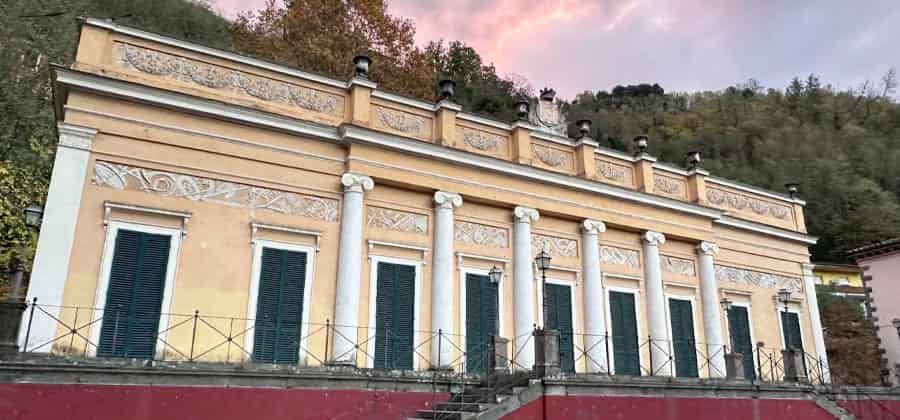 La storia dell’Ex Casinò di Bagni di Lucca ha radici molto antiche ed è strettamente legata alle Terme della cittadina, dove la Contessa Matilde di Canossa (1046-1115) aveva trovato grandissimo beneficio e grata della guarigione, grazie all’istituzione del Lascito di Matilde offriva a sue spese un bagno e un pasto ai poveri che vi si recavano. Per garantire la continuità del servizio a seguito della sua morte, la Repubblica di Lucca permise eccezionalmente di giocare presso i Bagni, in modo tale che gli incassi potessero contribuire al mantenimento delle strutture. Il gioco d’azzardo era permesso, ma solo nel periodo delle balneazioni, solo ai “forestieri” ed i proventi, dovevano essere devoluti per il mantenimento del lascito e degli stabilimenti.