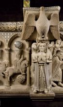 L'interno del duomo è a tre navate e presenta trasversalmente uno sbarramento marmoreo formato da lastre di marmo rosso riquadrate da marmo bianco decorato, al quale si appoggia senza soluzione di continuità il magnifico pulpito marmoreo, opera dei maestri comacini, che viene attribuito alla scuola di Guido Bigarelli da Como (XIII secolo). Il pulpito è sorretto da quattro colonne, due delle quali poggiano su due leoni i quali sovrastano: l'uno un drago l'altro un uomo. Le colonne posteriori poggiano l'una sul pavimento e l'altra sulla schiena di un vecchio curvo.