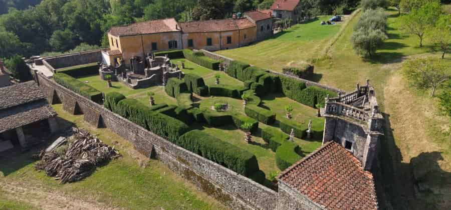 La caratteristica principale della Villa è il suo meraviglioso giardino: esempio perfetto dello stile Barocco, in estrema contrapposizione con la semplicità della grande casa. La Villa è disposta su due piani: una serie di porticati sovrapposti permettono l’ingresso al piano superiore, dove si trovavano le camere padronali e le sale di rappresentanza. L’intera proprietà è circondata da un fitto Castagneto.