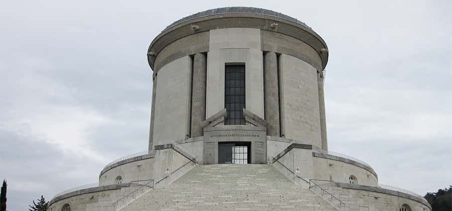 La costruzione, di aspetto imponente, è a due piani, collegati da scale interne. Al suo interno sono custodite le spoglie di Fabio Filzi e di Damiano Chiesa, i due irredentisti roveretani giustiziati dal governo austriaco per alto tradimento. Ci sono ancora le spoglie di circa ventimila soldati, noti e ignoti, italiani, austriaci (migliaia di trentini), cecoslovacchi e ungheresi caduti durante la grande guerra. L'edificio è ricoperto da una cupola di metallo e si ispira all'architettura classica. Al piano inferiore si trova una lapide su cui arde una fiamma in ricordo delle medaglie d'oro della Legione trentina (esercito italiano). A lato del pennone portabandiera situato nel piazzale si trova un vecchio rovere simbolo araldico della città di Rovereto. Ai margini della strada di accesso sono collocate alcune opere militari.