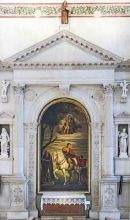 La cappella Pellegrini è soprattutto celebre perché contiene quello che è considerato il capolavoro di Pisanello, il San Giorgio e la principessa, affrescato tra il 1433 ed il 1438 sulla parete esterna sopra l'arco di accesso.