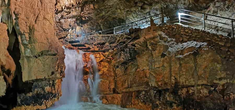 Le grotte hanno una lunghezza di oltre 1000 metri, non ancora del tutto esplorate e parzialmente aperte al pubblico. Costituiscono una risorgenza attiva, sono cioè state prodotte dalla presenza di un fiume sotterraneo che fuoriesce in superficie, caso pressoché unico in Italia. L'ambiente mantiene una temperatura di appena 10 °C, costante tutto l'anno.
