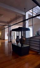 Nelle nicchie lungo la scalinata che conduce al primo piano sono collocate le sculture di Giuseppe Antonello Leone, facenti parte della mostra “Il riposo delle pietre erranti”.