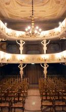 Il teatrino su una planimetria rettangolare due ordini di balconate si svolgono con andamento ininterrotto ad U. La raffinatezza dell’ambiente è conferita dalla delicatezza dei colori pastello degli affreschi e dai corpi sinuosi di venti tritoni e cariatidi che sorreggono le balconate. Nelle mani di queste figure si appoggiavano lanterne, ghirlande di fiori, ramoscelli o festoni in occasione di particolari festeggiamenti. Il teatro, famoso per la sua acustica, può ospitare fino ad 80 persone. Grazie alla gestione da parte dell’Associazione “Cultura e Arte del ’700“, si svolge una regolare ed intensa stagione di rappresentazioni, concerti, opere liriche e conferenze.