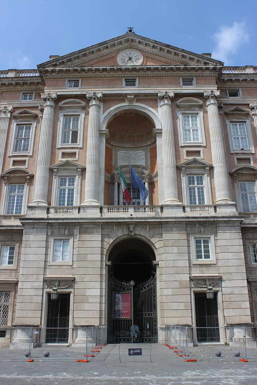 La reggia, definita l'ultima grande realizzazione del Barocco italiano, fu terminata nel 1845 (sebbene fosse già abitata nel 1780), risultando un grandioso complesso di 1200 stanze e 1742 finestre, per una spesa complessiva di 8.711.000 ducati. Nel lato meridionale, il palazzo è lungo 249 metri, alto 37,83, decorato con dodici colonne. La facciata principale presenta un avancorpo centrale sormontato da un frontone; ai lati del prospetto, dove il corpo di fabbrica longitudinale si interseca con quello trasversale, si innestano altri due avancorpi. La facciata sul giardino è uguale alla precedente, ma presenta finestre inquadrate da lesene scanalate.