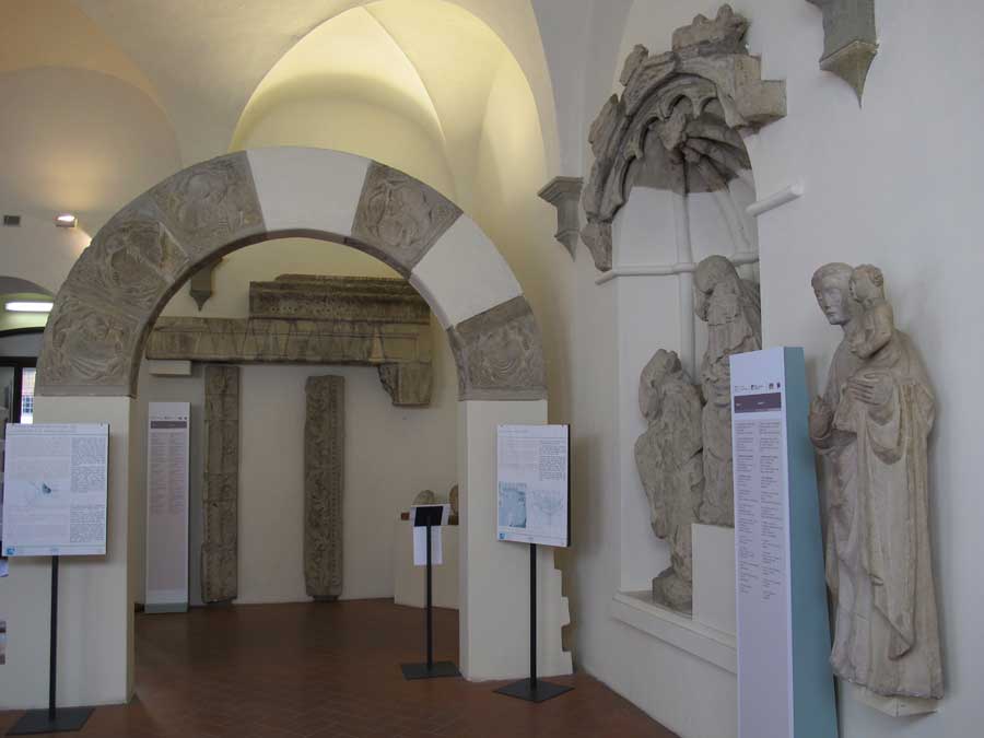 Le due sale al piano terreno custodiscono sculture e frammenti di lapidi di epoca medievale, colonne, capitelli e sculture provenienti dal Duomo e da altre chiese di Arezzo.