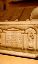 Il nucleo più importante del Lapidario Estense è rappresentato dagli imponenti sarcofagi di età imperiale romana trasferiti dal cortile delle Canoniche del Duomo, dove giacevano dalla fine del XVII secolo, e che costituiscono ancora oggi la serie più cospicua di manufatti di tale genere di tutta l’Emilia Romagna. All’importante sezione romana si affiancano senza soluzione di continuità i monumenti della sezione medievale e rinascimentale che documentano il reimpiego dei sarcofagi antichi e le successive riprese ed imitazioni. Quest’ultima sezione documenta le personalità modenesi illustri appartenenti anche alla storia a noi più vicina.