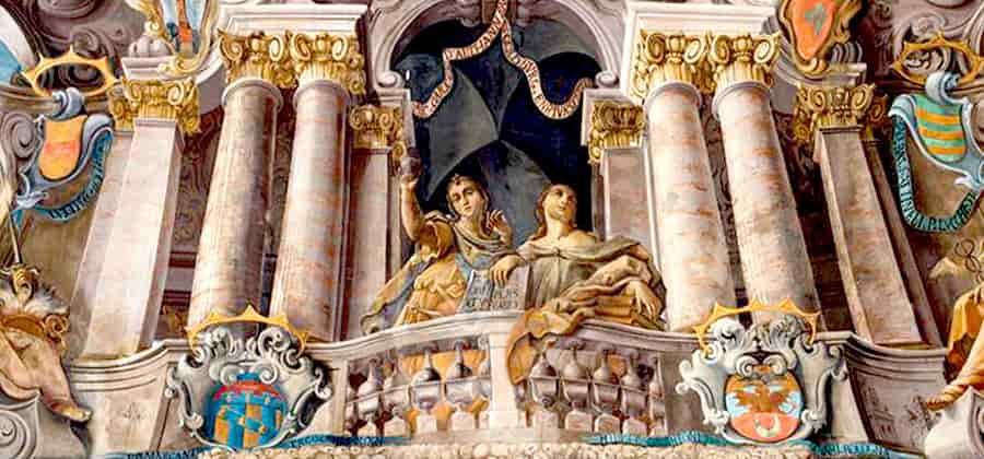 Al primo piano si apre la Galleria d'Onore, con pareti riccamente affrescate a trompe l'œil e altre immagini di convittori; il corridoio conduce alla Sala dei Cardinali, la più importante e celebre del Collegio. La Sala Cardinali situata al primo piano del palazzo è la principale e la più raffinata del complesso architettonico: qui avevano luogo le cerimonie di laurea all'epoca in cui il collegio coincise con l'università. Riccamente decorata con affreschi in stile barocco, presenta sulle pareti ritratti di ex-allievi divenuti cardinali, da cui il nome.