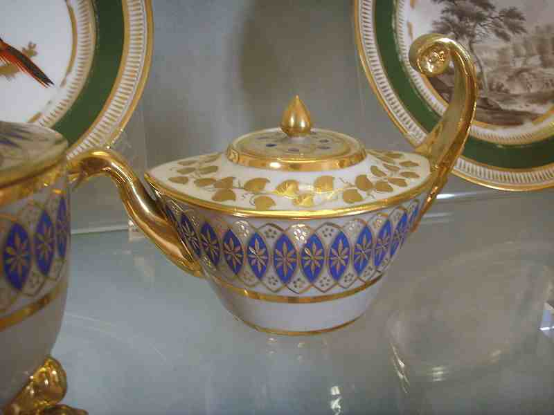 Numerosi sono i serviti di rappresentanza di piatti, tazze e tazzine, specialmente dedicate alle nuove mode di prendere il caffè e la cioccolata in tazza, nonché le numerose teiere, i vasi e le statuine, tutti decorati con soavi motivi ornamentali in stile soprattutto rococò e neoclassico.