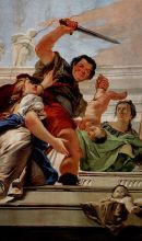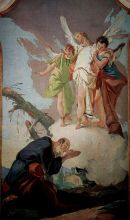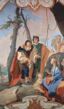 La visita comprende anche una serie di affreschi di Giambattista Tiepolo, che possono essere considerati l'opera d'arte più insigne della città. Tiepolo fu chiamato dal patriarca Dionisio Delfino nel 1726, per affrescare nello scalone d'onore la "Caduta degli angeli ribelli", un'opera di gusto tardobarocco, con una tavolozza ancora scura, ed effetti scenografici ottenuti con rilievi a stucco. Tra il 1727 ed il 1729 il Tiepolo affrescò nella Galleria gli episodi di "Agar nel deserto", del "Sacrificio di Isacco", del "Sogno di Giacobbe", e poi ancora "Abramo e gli angeli", "Rachele che nasconde gli idoli" e "L'angelo che appare a Sara". In questo ciclo di affreschi lo stile del pittore veneziano muta rapidamente. La tavolozza si schiarisce, avvicinandosi a colore e luminosità di un Paolo Veronese. Rinuncia ad effetti scenografici ancora barocchi, ed inserisce brani paesaggistici che dimostrano una crescente attenzione per il reale. Una curiosità: il Tiepolo si autoritrae nella figura di Giacobbe.