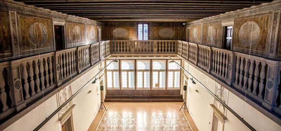Affacciato sul fiume Livenza, il palazzo colpisce già dall’esterno con le eleganti finestre a trifora e pentafora e con la scenografica facciata secentesca. Entrando si accede al cortile d’onore, arricchito da statue in stucco attribuite alla scuola di Alessandro Vittoria. Al piano nobile si trovano i grandi ambienti di rappresentanza: il celebre Salone degli Imperatori, decorato a fine Cinquecento con un ciclo di affreschi manieristi di Francesco Montemezzano, allievo di Paolo Veronese, che celebrano la gloria della famiglia attraverso la raffigurazione di sovrani e condottieri. Non meno suggestiva è la Saletta delle Bandiere, dove gli stemmi e i simboli delle potenze politiche e commerciali del tempo testimoniano i rapporti internazionali dei Ragazzoni.